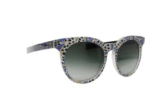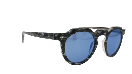 Textured Round Frame – Monochrome Marble with Blue Lenses 1 of 1